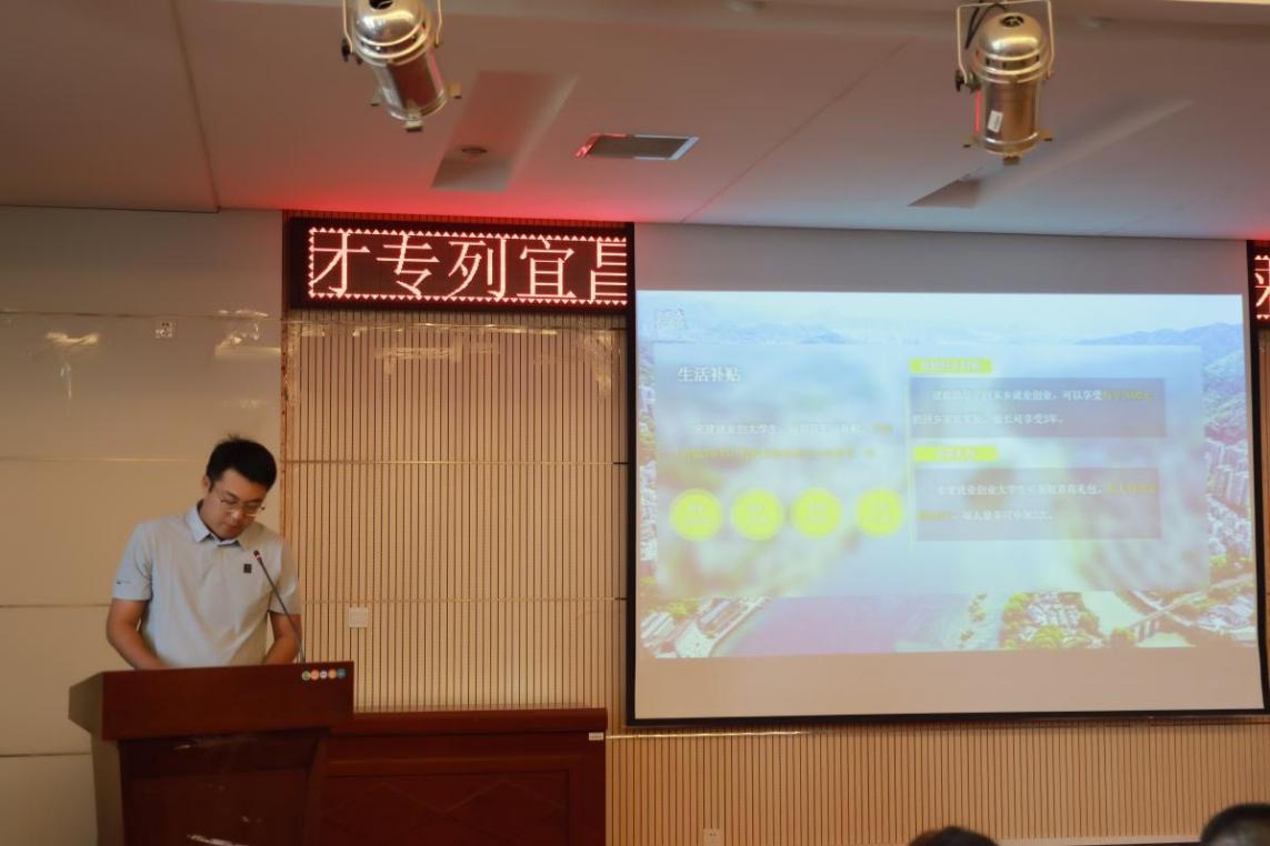 建德市人力社保局团工委书记郭傲对建德市大学生就业创业政策进行了介绍。建德市为招贤纳才,给广大高校毕业生提供了优厚的政策支持,郭傲指出建德市在高校毕业生衣食住行等各方面均有配套政策,为高校毕业生尤其是外地毕业生解决了后顾之忧,为高校学子在建德安家立业提供了可靠保障。