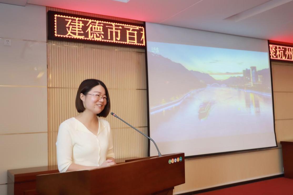 建德市人力社保局党组成员、副局长余丹对建德市市情进行推介,她介绍了建德市悠久的历史、人文景观、发展历程以及未来发展方向。她表达了建德市对人才的渴望,希望学院学子们能了解建德、选择建德,能有更多的学生到建德生活、工作,在建德发光发热。
