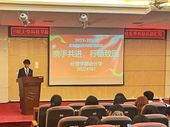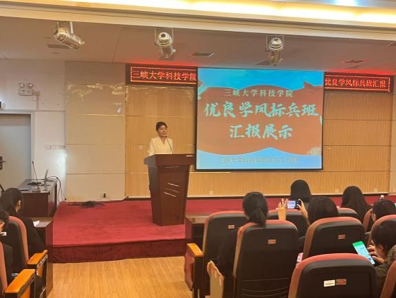本网讯(通讯员王欣 蔡明秀)为进一步加强学院学风建设,引导和激励同学们积极向上,团结奋进,树立优良学风标兵班榜样作用。10月29日下午,三峡大学科技学院学生工作部在天问报告厅举办“优良学风标兵班”汇报展示活动。学生工作部全体老师、辅导员及200余名学生参加此次活动。