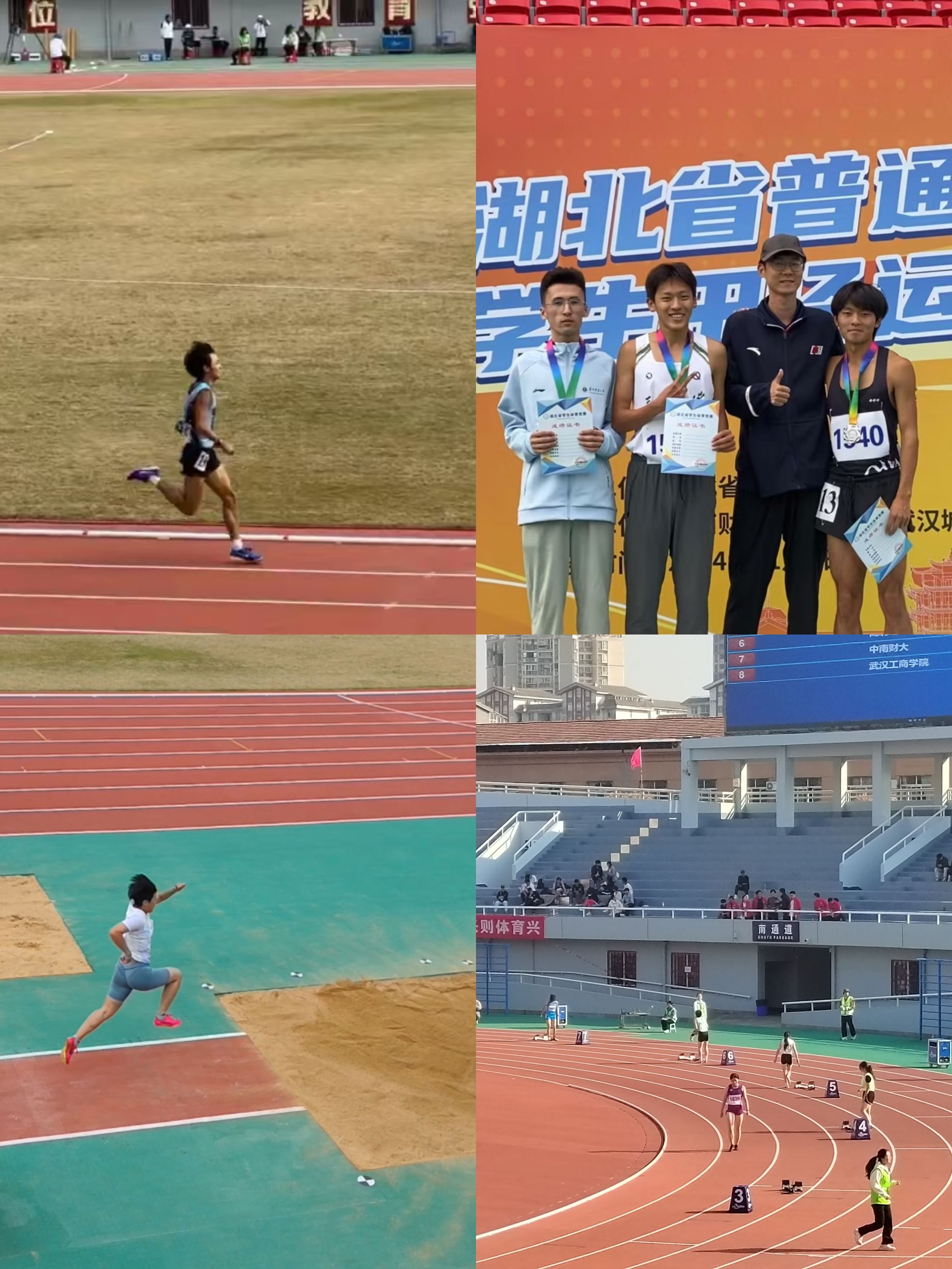 本网讯(通讯员 王君 文/图)2024年11月8日,湖北省普通高等学校大学生田径运动会在中南财经政法大学盛大举行,我院派出的田径代表队由学院院长助理都林担任领队,王君、陈春华、姜伟三位老师担任教练,来自各学部的10名运动员参加男女甲组的比赛,经过三天的拼搏,取得了不错的成绩,他们用实际行动诠释了体育精神,为学校赢得了荣誉。