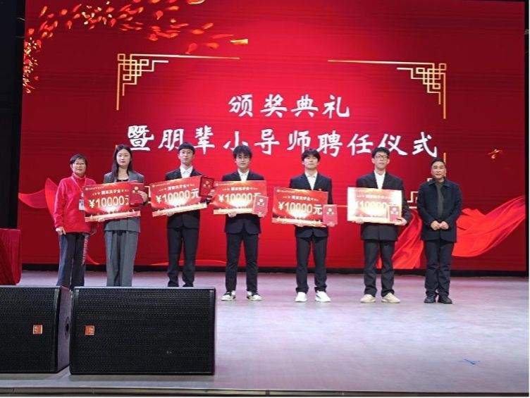 最后熊燕、谢云堂老师为国家奖学金获得者代表颁发了荣誉证书和“朋辈小导师”聘书并鼓励大家再接再厉,再创佳绩。