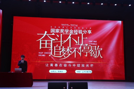 本网讯(通讯员 李莉 刘心宇)汇聚榜样光芒,激发奋进动力。为助力优良学风建设,营造全员勤学乐享的学习氛围,充分发挥国奖学子的榜样力量,做实做好感恩励志资助教育,11月28日,由学生工作部主办、学生资助中心承办的“逐梦青春 国奖领航”---第六届国奖论坛第二篇章“理工征途 智启新章”在新校区学术报告厅再续新篇。本次论坛共邀请到五名国家奖学金获得者分享他们的学习经验,他们分别是机械电气学部黄焜镒、经济管理学部钱志雄、土木水电学部孙英杰、机械电气学部庄瑞彤、土木水电学部郭传杰。