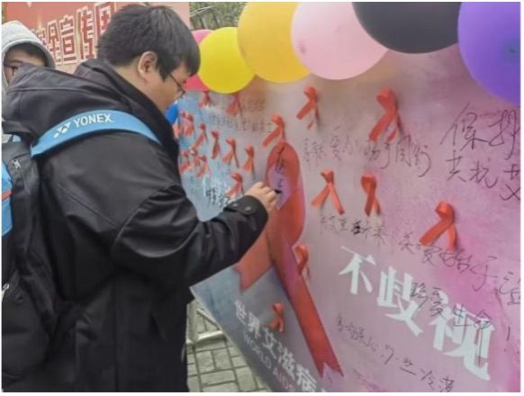 12月3日,经管学部开展了防艾抗艾主题宣传教育活动。活动现场,志愿者们忙碌地分发宣传资料,耐心讲解艾滋病的传播途径、预防方法,并宣传正确对待艾滋病患者的态度。通过防艾知识知多少、“艾”的抱抱、“红丝带的承诺”等趣味活动,以及专业老师的讲座,师生们对艾滋病有了更深刻的认识,消除了对艾滋病患者的歧视和误解,激发了大家的社会责任感和爱心。
