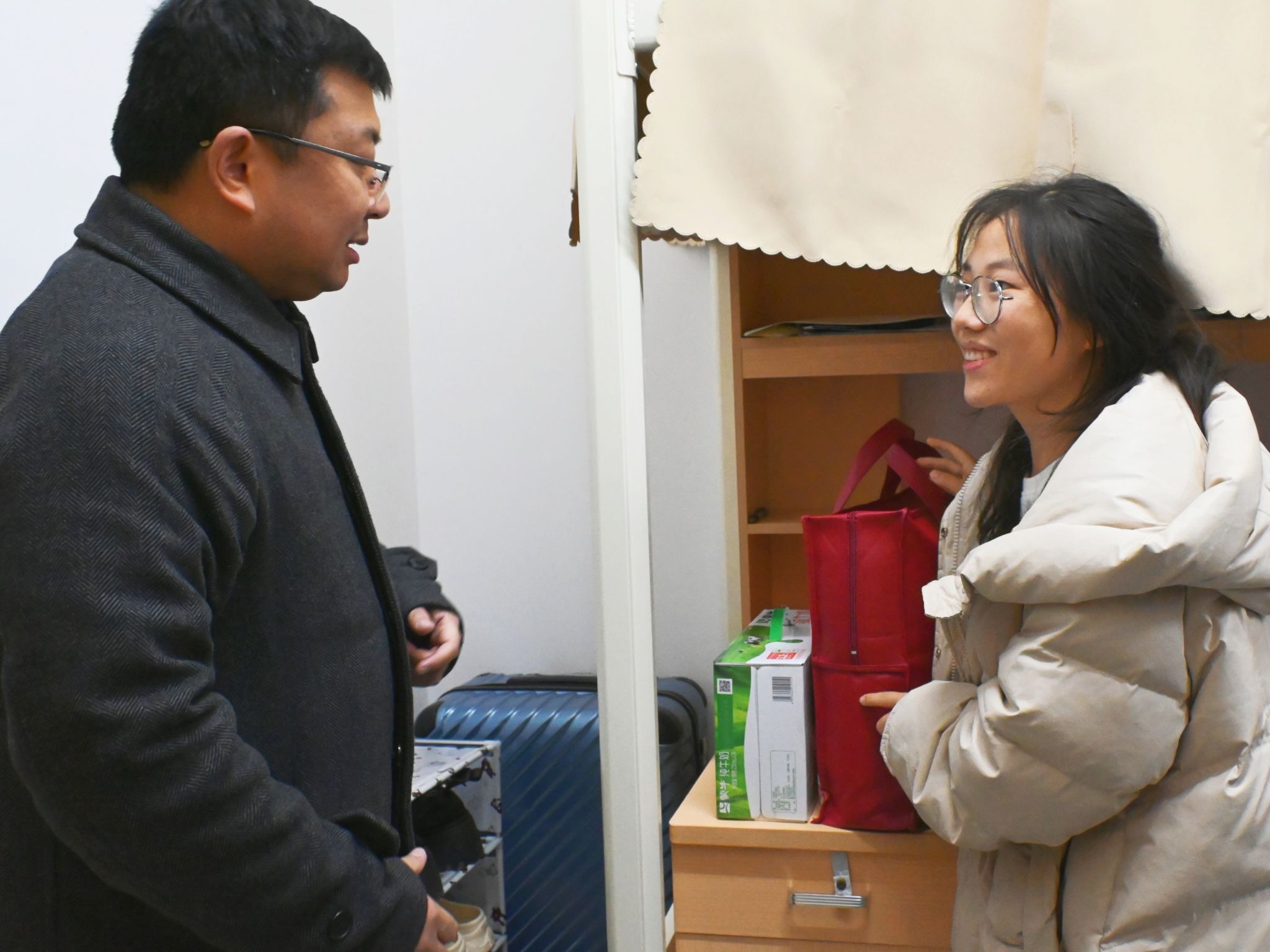 随后,院领导们深入寝室走访慰问了困难学生,从生活到学习,从初来乍到到岁末年关,领导们事无巨细嘘寒问暖,与同学们进行了亲切的交流,详细了解了大家的家庭情况学习生活状况,针对同学们各自的问题提供了行之有效的解决办法,并主动留下联系方式全力保障后顾之忧,为同学们提供了多渠道的帮扶途径,以切实将关心工作落到实处可持续化开展。这种“家常式聊天”让同学们感到贴心和温暖。在交谈中,院领导们对于同学们能科学规划自己的职业生涯表示肯定,也提出了更多期许,受访学生一致表示,定将不辜负学校和师长们的期望,继续奋发图强,持续进步,将学校的关爱转化为动力,以实际行动回馈学校和社会。