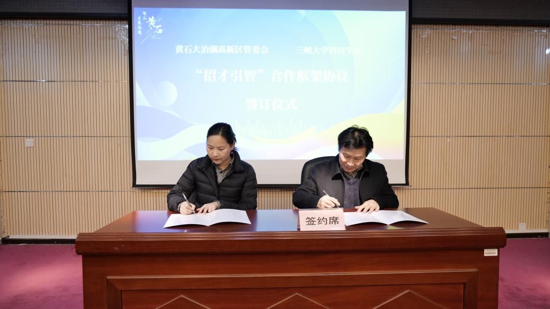 随后,三峡大学科技学院党委副书记欧阳美平与黄石大冶湖高新区经济发展局副局长赵淑君,签订了招才引智合作框架协议。为人才汇聚开启新篇,为区域发展注入澎湃动力。