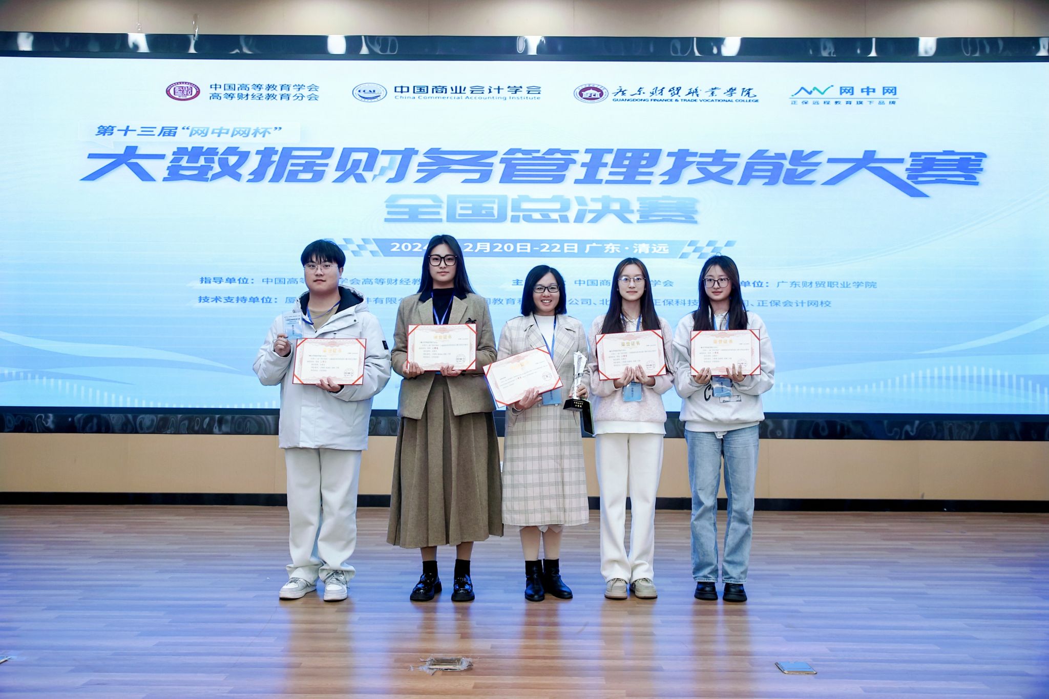 本网讯(通讯员 吴慧芬)近日,由中国高等教育学会高等财经教育分会指导,中国商业会计学会主办的第十三届“网中网杯”大数据财务管理技能大赛全国总决赛在广东清远落下帷幕。本次大赛由经济管理学部吴慧芬老师指导,2023级大数据与会计专业学生王姝嫣、温嘉怡、姜雨、王硕在此次大赛中表现突出,荣获全国总决赛二等奖。