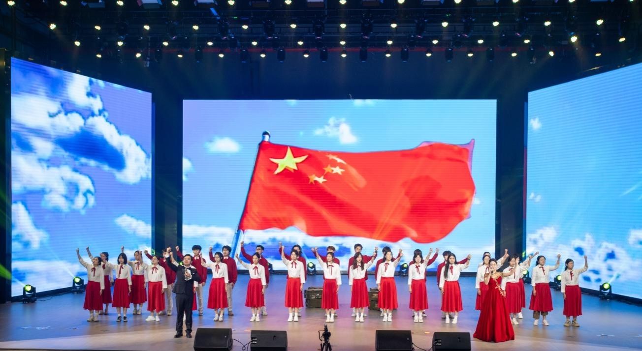 尾声,团学联合会学生代表领唱《我爱你中国》,把这场思政美育大课推向高潮。