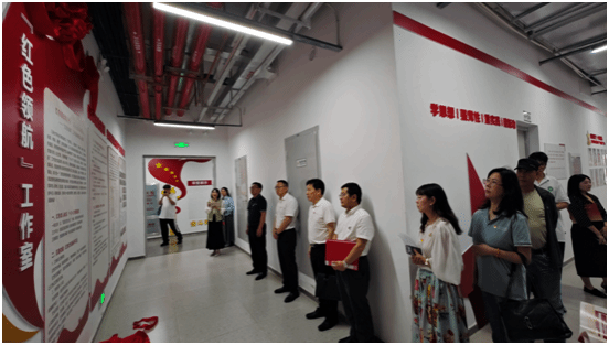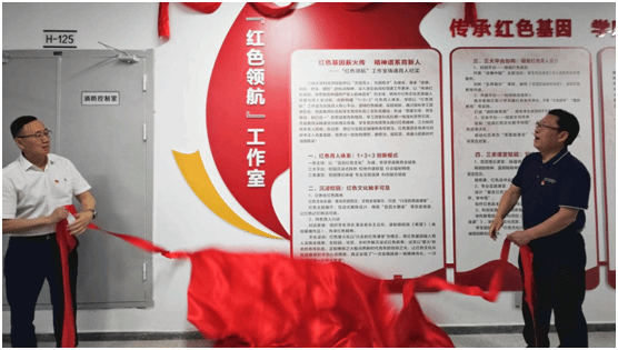 仪式现场,学院领导为红色领航工作室揭牌,鲜红的绸布落下,标志着学院实践育人核心平台正式启航。该工作室将聚焦红色铸魂、实践赋能,通过强化学工队伍、思政教师队伍和学生党员队伍三支队伍建设,为青年学子打造沉浸式红色教育阵地。随后启动的青春领航主题文化长廊,长廊以《时代的号角》、《青春的足迹》、《多彩的舞台》和《奋力前行》四个板块,全景展现了学院共青团在服务青年成长中的成果,以图文并茂的形式,生动展现中国共产党人精神谱系,融入地方红色文化资源,让师生在校园漫步间,就能学思践悟。