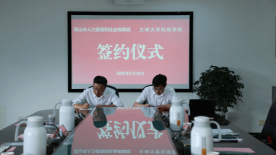 最后,学院副院长罗华军与昆山市人力资源管理服务中心副主任钟臻弘一行进行了座谈,双方就未来开展校地合作、人才培养、实习就业等进行了交流,罗华军副院长代表学院与昆山市签订了校地合作协议。