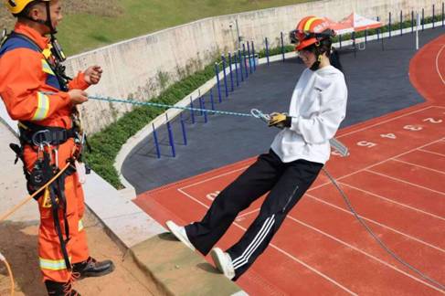 趣味消防技能环节更是将活动氛围推向高潮。灭火器负重接力跑、消防水枪打靶项目中,同学们积极参与,让体验者既真切感受到高空逃生时的紧张与专注,也以更深切的体验致敬了消防救援人员每一次勇敢逆行生死较量。现场气氛热烈,让实践学习充满了趣味性和获得感,寓教于乐的方式无形中强化了同学们的防范意识,提升了应急处置能力。