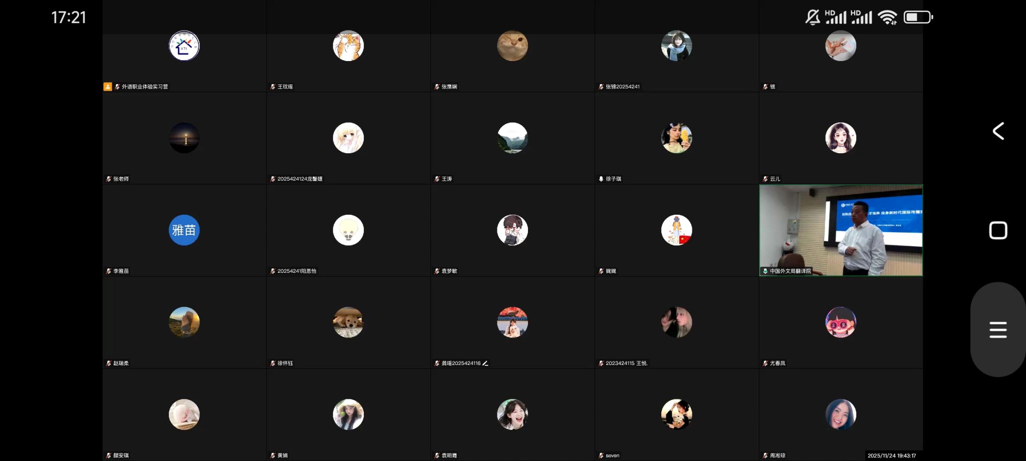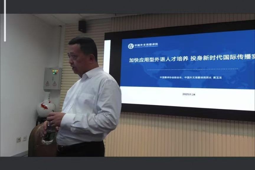 (通讯员 徐丹)11月24日晚,文法学部邀请中国翻译协会副会长、中国外文局翻译院院长黄玉龙作主题为“加快应用型外语人才培养 投身新时代国际传播实践”线上学术讲座。学院副院长罗华军教授、文法学部英语和传媒专业近两百名师生参与活动,部门负责人王涛主持讲座。