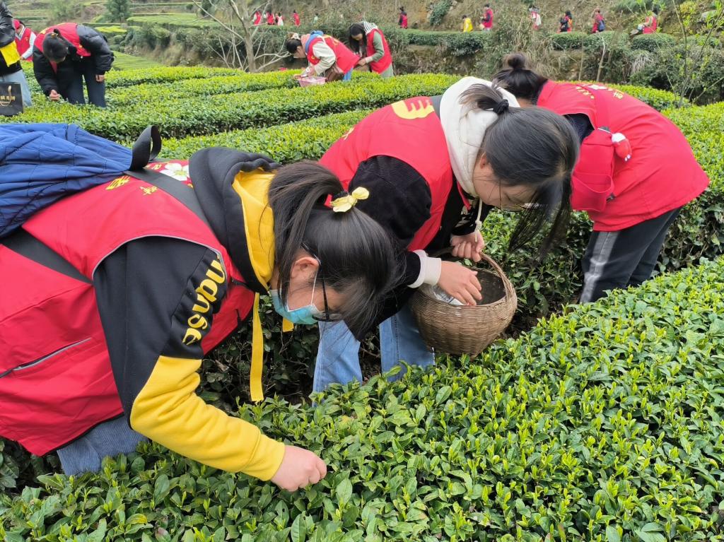 本网讯(通讯员 郑书慧)为了用实际行动践行党的二十大精神,2023年3月25日,三峡大学科技学院经济管理学部学生第三党支部在茶山栗乡路溪坪村开展了以“助农采茶青春行,乡村振兴正当时”为主题的助农采茶志愿活动。有33名党员和入党积极分子参加了本次活动。