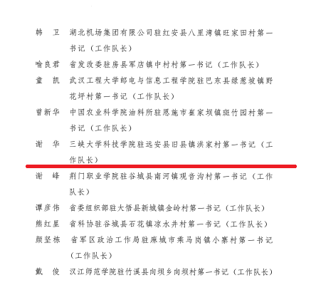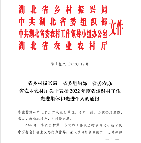 本网讯(通讯员高洋)近日,省乡村振兴局、省委组织部、省委农办、省农业农村厅印发了《关于表扬2022年度省派驻村工作先进集体和先进个人的通报》。学院驻远安县旧县镇洪家村工作队第一书记(工作队长)谢华获评2022年度工作突出驻村第一书记(工作队长)。