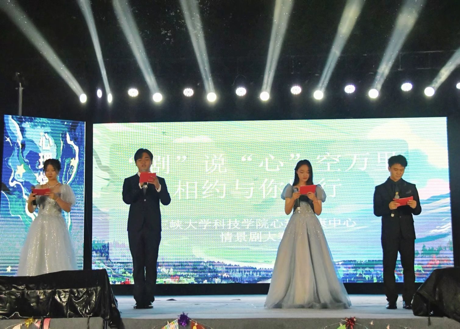 本网讯(通讯员 鲜于宁 段珂珂)2023年5月31日晚19:20,由三峡大学科技学院心理健康中心承办的心理情景剧大赛决赛在东苑广场隆重举行。宜昌市优抚医院市场服务部主任许祥伟、三峡大学心理中心胡维老师、三峡大学科技学院学工部副部长兼武装部副部长李莉老师、学工部副部长兼心理中心主任张娟老师、艺术团指导教师梁马超老师、心理健康中心特聘咨询师及专职教师、各学部学生支部书记及辅导员老师出席了本次活动。