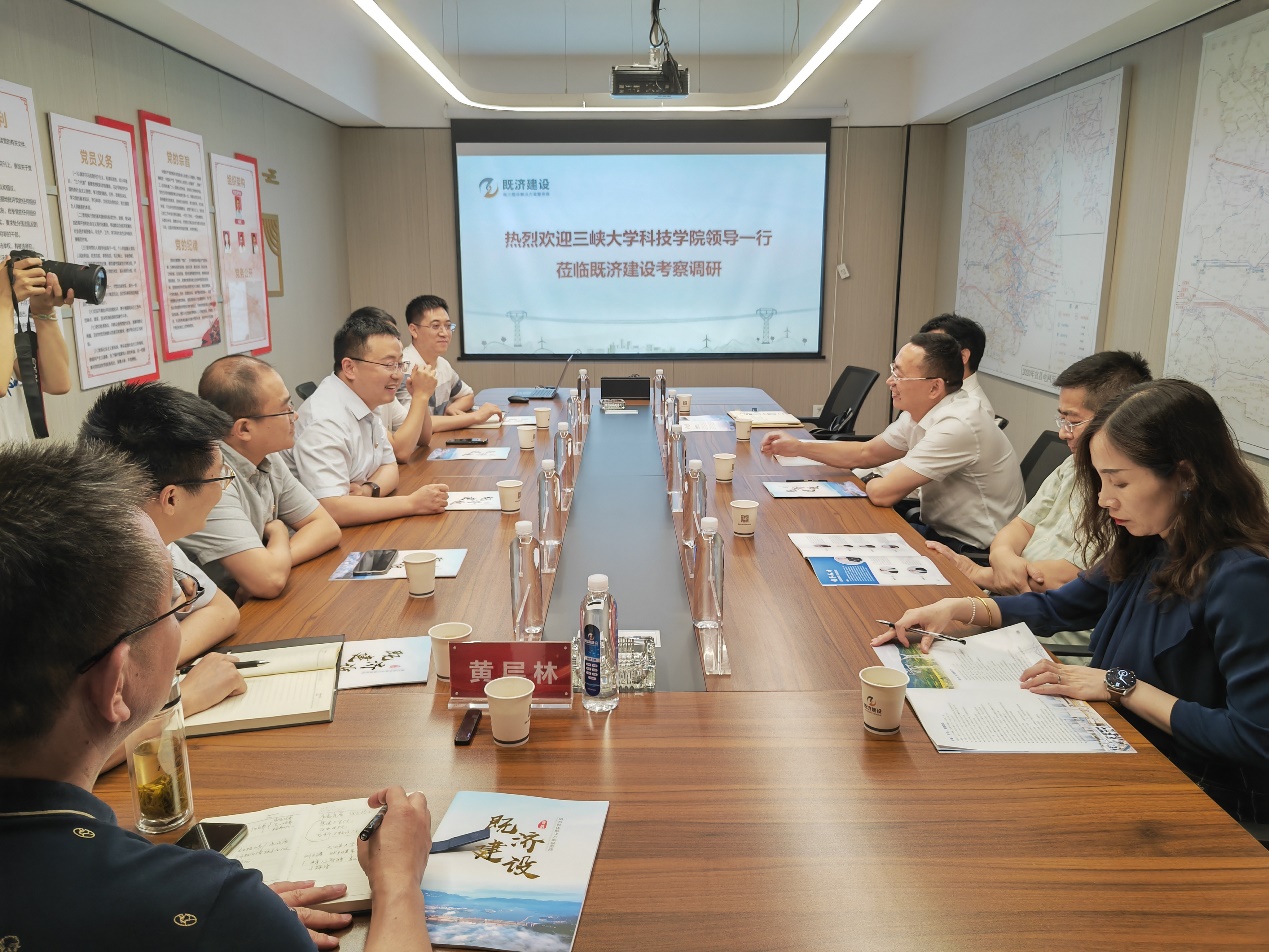 本网讯 (通讯员 刘巨涛) 6月1日,院长李灿带队走访宜昌既济建设有限公司。既济建设总裁黄伟、总经理杨群久、副总经理胡博闻及各分公司、产业部负责人等热情接待了李灿一行。