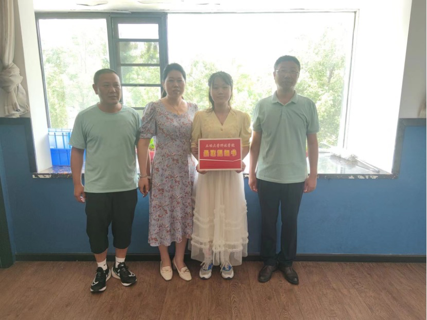 佳音送达,金秋九月与君携手共筑星河灿烂。院长李灿一行一大早就驱车赶往远安县旧县镇龙泉村张心怡同学家里,对她以优异成绩被我院录取表示热烈祝贺,关心地询问了张心怡同学的家庭情况以及将来的人生目标,鼓励其继续保持良好的学习状态,认真做好开启大学生活的准备,期望她在今后的大学生活中学业精进、生活精彩。