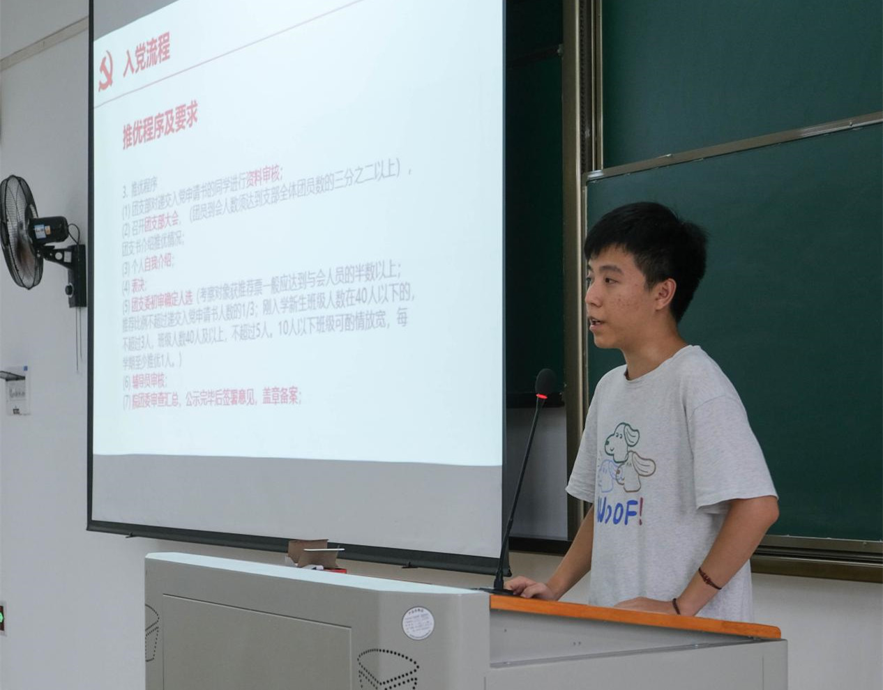 第二项,机电学部学生第三党支部丁熙浩同志向各位2023级新生们分享了入党流程以及入党须知。各位同学聚精会神,在笔记本上记录着所听所获。