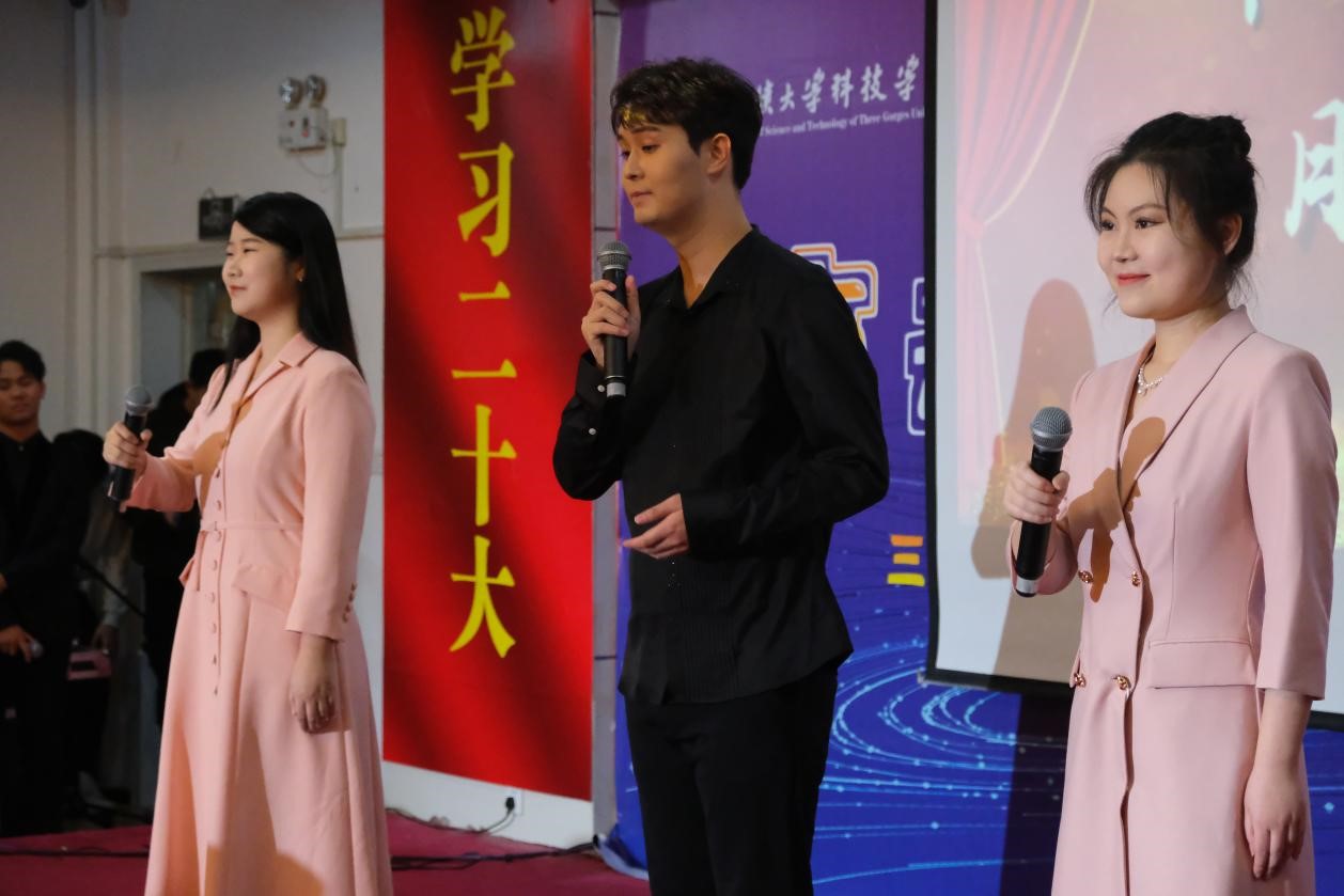 本网讯(通讯员 刘梁超 马方洁 黄润阳/文 何文敏 韩耀阳/图)金秋十月声动科院,毕业汇演音响未来,2023年10月25日下午3:00,三峡大学科技学院2020级播音与主持艺术专业汇演在天问报告厅举行,刘通老师,谢元新老师,镇涛老师,梁马超老师,范冰杰老师和2020级播音与主持艺术专业学生参加了汇演,汇演由耿雅欣,张鹏宇,刘家辉,崔永森主持。