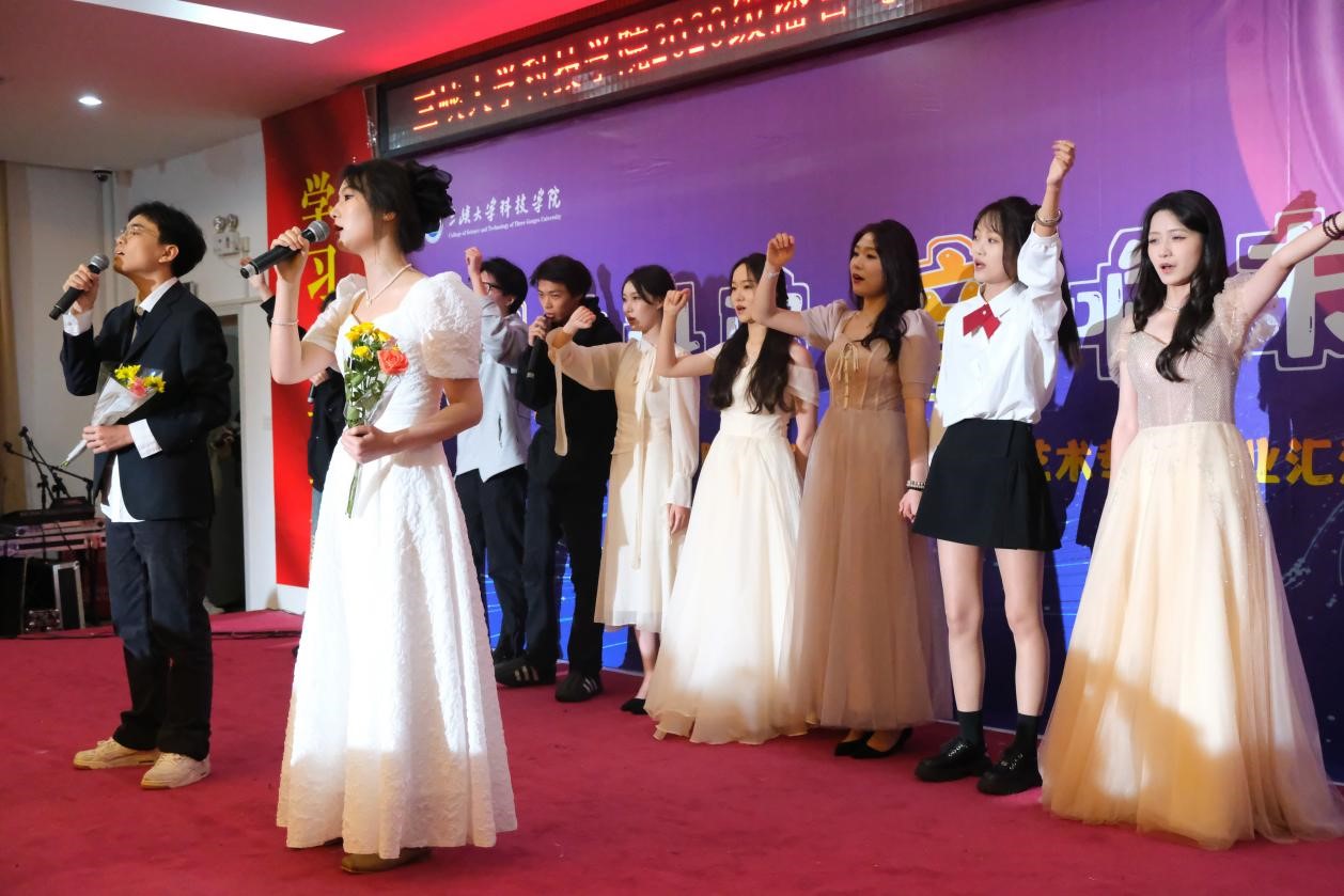 最后,伴随着合唱的结束,本次毕业汇演顺利落下帷幕。回首四年来的科院生活,有欢笑,有难过,有挫折,有成功,他们在磨砺中成长;毕业汇演表达了播音学子们对科院的爱,三峡大学科技学院也祝愿毕业生们在离别母校,踏入社会后,振翅高飞九万重,直上扶摇大作为!