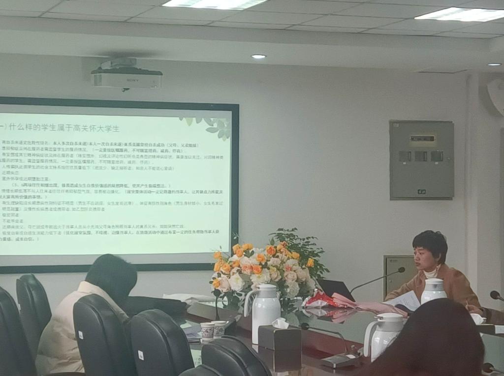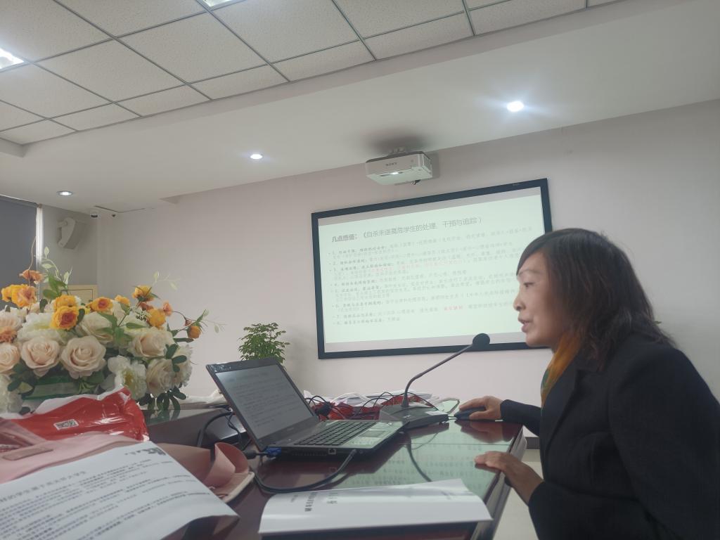 培训分为三个主题,首先是心理中心胡慧玲老师主讲的“高关怀学生教育与管理”,围绕《辅导员应对学生心理危机操作手册》学习资料的主要内容,胡老师带领大家学习了我院心理危机干预细则,梳理了高关怀学生的分类识别、评估干预及追踪干预的全过程,明确将危机问题控制在早中期的目标,着重讲述了绿色通道转介的注意事项以及心理排查动态表的规范填写。