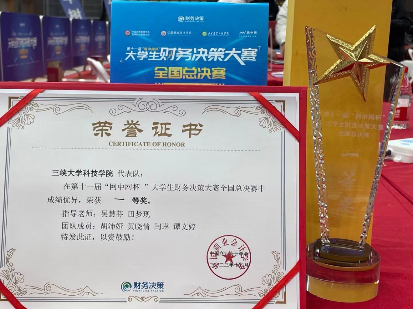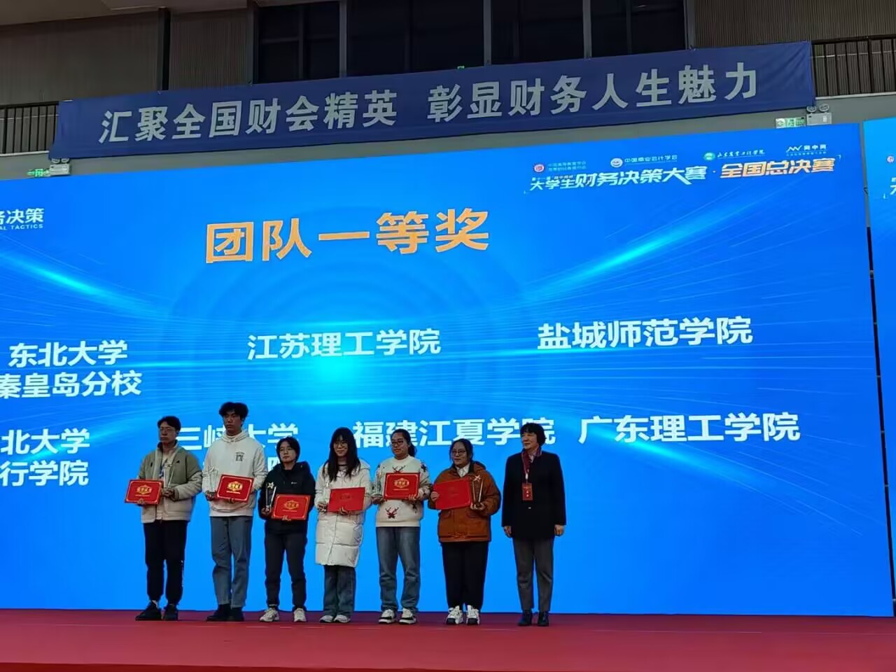 本网讯(通讯员 吴慧芬 田梦现)近日,第十一届“网中网杯”大学生财务决策大赛全国总决赛圆满落幕。在吴慧芬、田梦现老师的悉心指导下,我院财务管理专业学生胡沛娅、谭文婷、黄晓倩、闫琳组成的代表队经过几个月的刻苦训练,在赛场上奋力拼搏,充分展示自身的竞技水平,最终荣获全国总决赛一等奖的优异成绩。