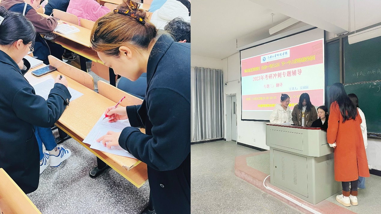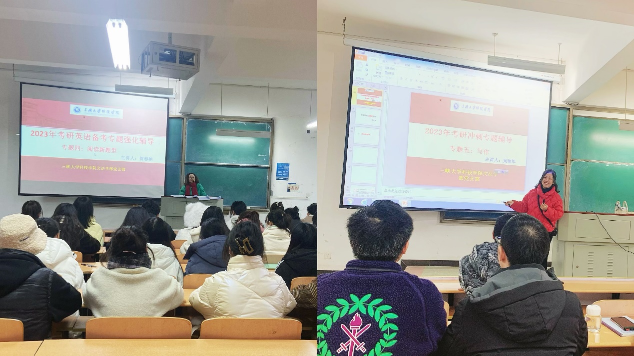 本网讯(通讯员 王芳)全国研究生入学考试临近,为帮助我院学子更好地应对考研英语考试,提高语言应用能力和应试技巧,文法学部党支部组织多位资深英语教师,为我院即将参加考研的学子们,开展了一系列的考研英语冲刺辅导活动。