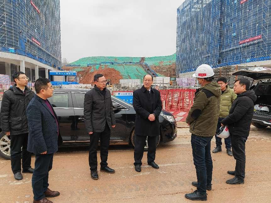 随后,何伟军一行又来到学院新校区项目建设现场,听取了湖北省教育投资有限公司相关负责人对项目总体情况的介绍,实地查看了项目建设进度等情况。