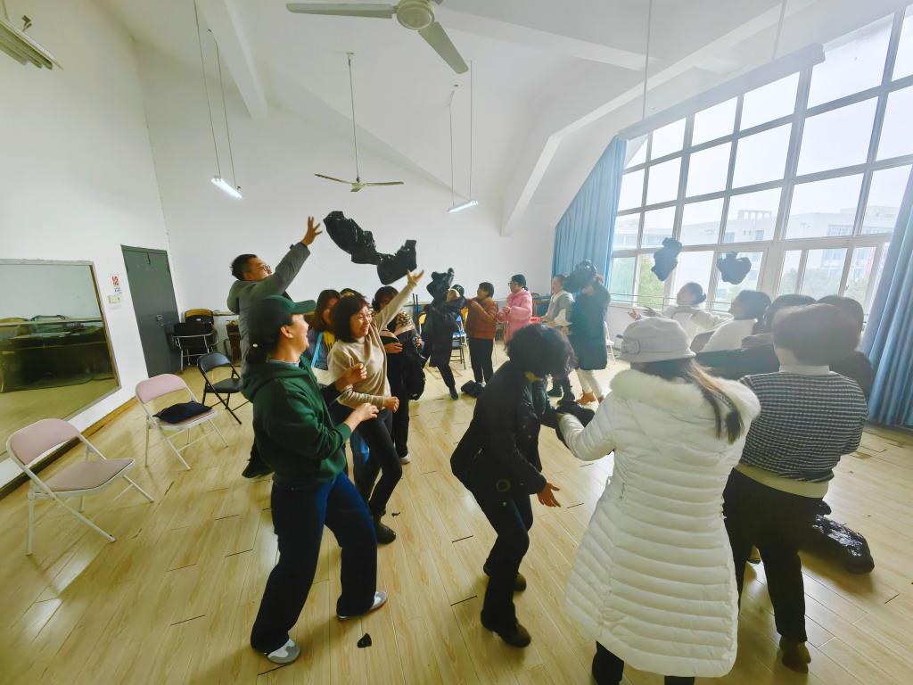 团体以妙趣横生的开场介绍开始,随后进行了一系列活动,包括无实物传递、情绪传递等,迅速点燃了现场的热情。接着,一个国王与刺客的游戏活动让大家进入到紧张刺激的氛围里,随着音乐节奏,牟老师带领大家现场取材,运用垃圾袋做乐器,群魔乱舞一般尽情释放疲惫与压力。最后,大家在意向催眠训练中通过不同场景的转换引发了对过去与未来的思索。