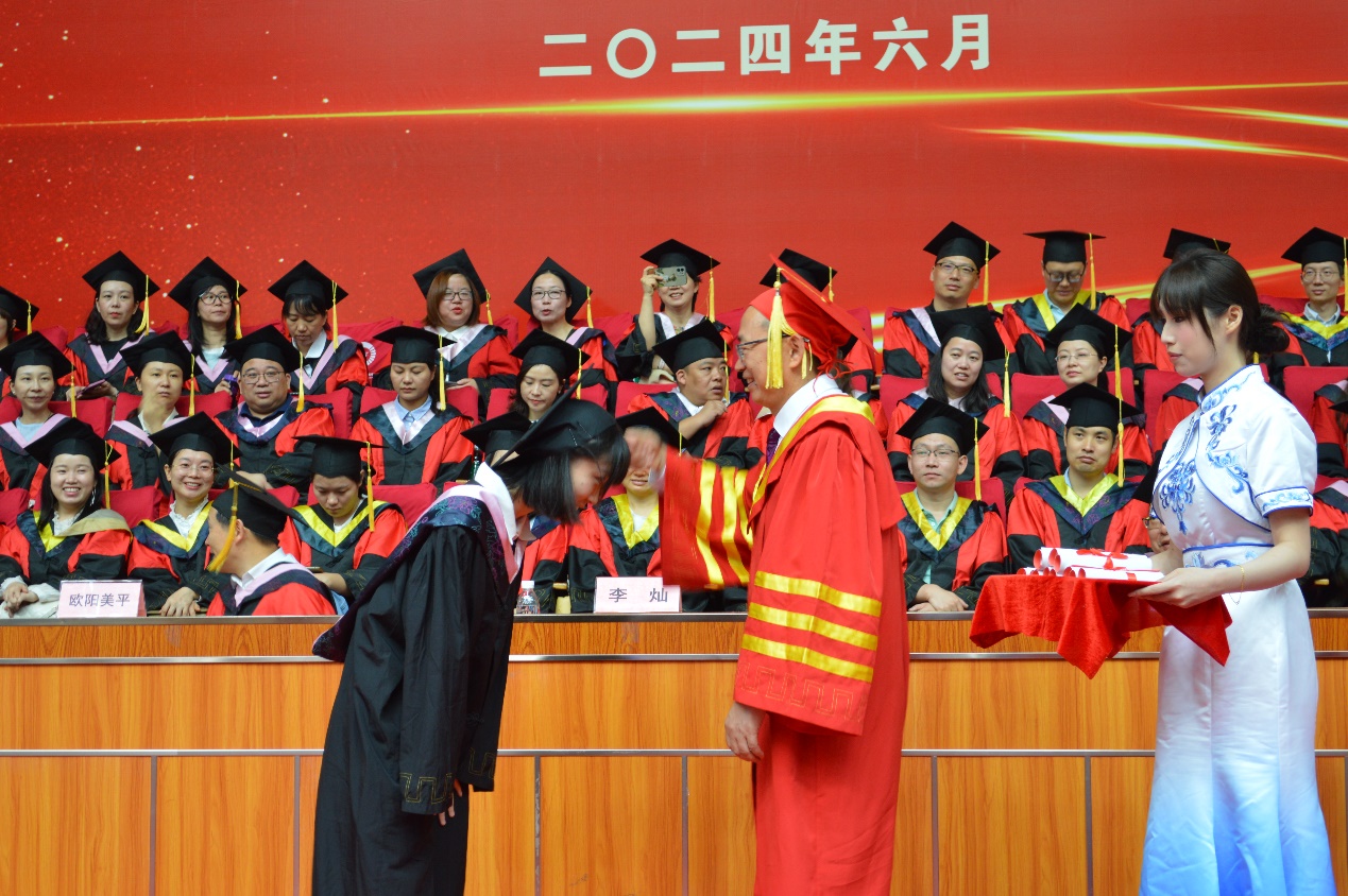 在热烈的掌声中,仪式迎来了学位授予仪式,学院院长李灿为毕业生们一一拨穗正冠、颁发学位证书。这一刻,不仅是对毕业生学业成果的肯定,更是对每位同学未来人生的美好祝愿。毕业生们用热烈的掌声和欢呼声表达了对母校的感激之情和对未来的期待。