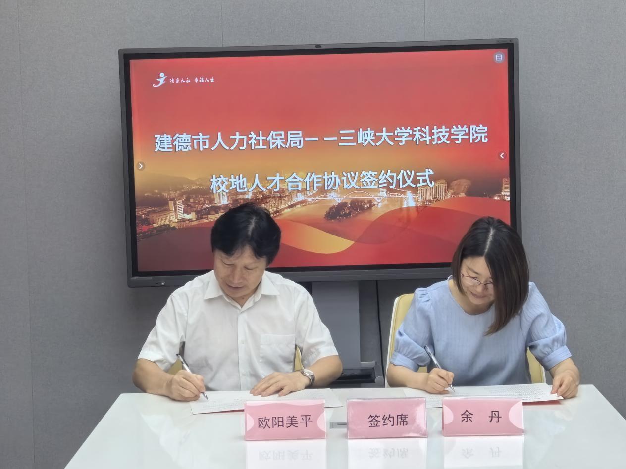 在建德市人社局,欧阳书记一行介绍了学院概况及毕业生基本情况,了解了建德市人才招引的优厚政策,欧阳书记代表学院与建德市人社局领导签署了校地人才合作协议。根据协议,双方将在人才培养、实习实训、科研创新等方面开展深入合作,共同推动地方经济社会发展。