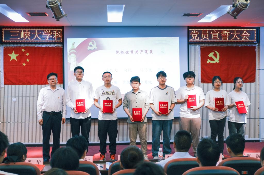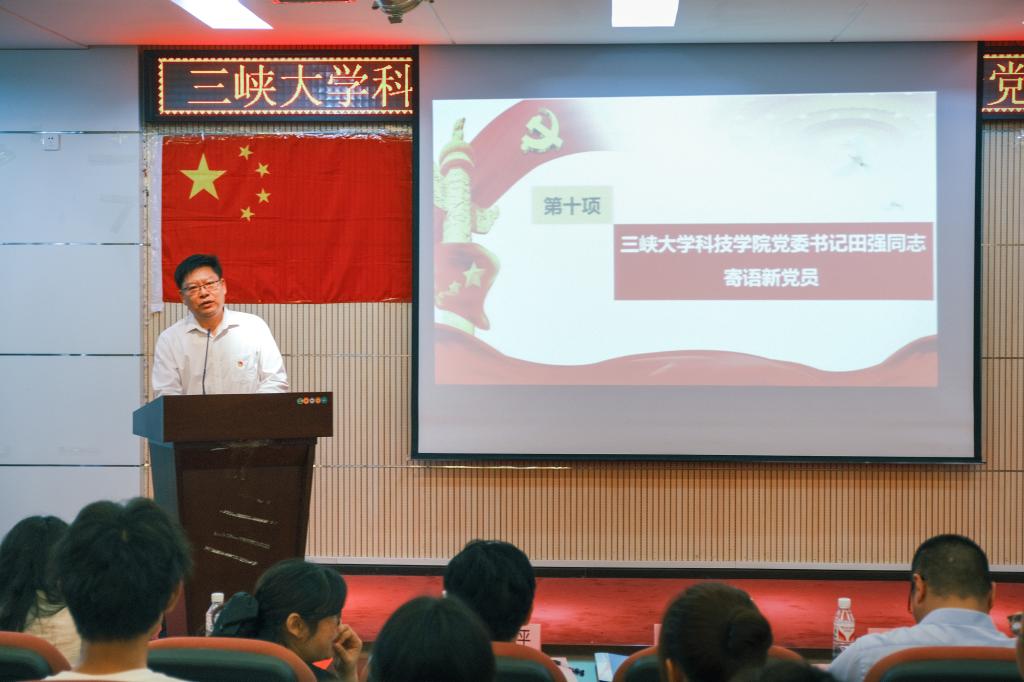 本网讯(通讯员 周婷 李路)为激励预备党员坚定理想信念,加强党性教育,增强荣誉感和归属感,让预备党员明确自己的责任与担当,牢记全心全意为人民服务的根本宗旨。2024年6月21日,三峡大学科技学院学生党总支召开2024年七一表彰暨新党员宣誓大会,党委书记田强,党委副书记欧阳美平,党委委员、院长助理、学生党总支书记都林,党委办公室主任姜华,全体学生党总支成员及学生党支部书记参加此次会议。
