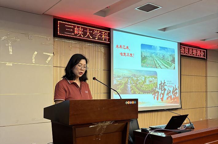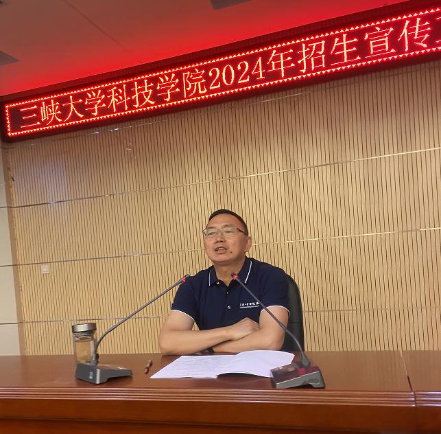 本网讯(通讯员 兰涛)6月19日下午,三峡大学科技学院在天问报告厅组织召开了2024年招生宣传培训及动员会。学院党委书记田强、院长李灿、副院长罗华军、副院长周成俊出席活动,全院教职工及参与今年招生宣传活动的学生参加了大会,会议由招生办公室主任袁银芳主持。