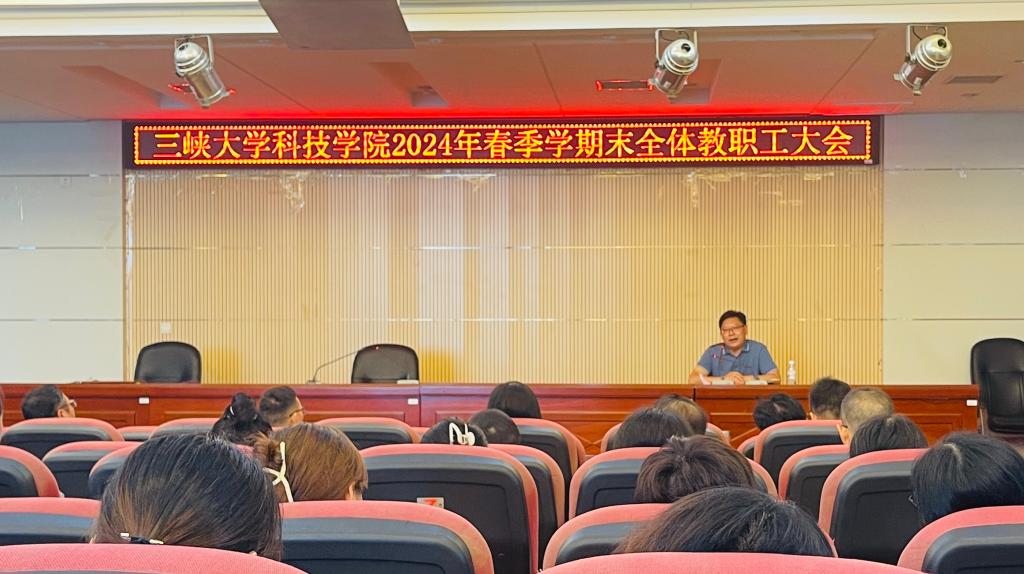 本网讯(通讯员 张袁/文 许泽琛/图)7月5日下午,我院在天问报告厅召开了2024年春季学期末全体教职工大会暨暑期工作布置会。会议由党委书记田强主持。