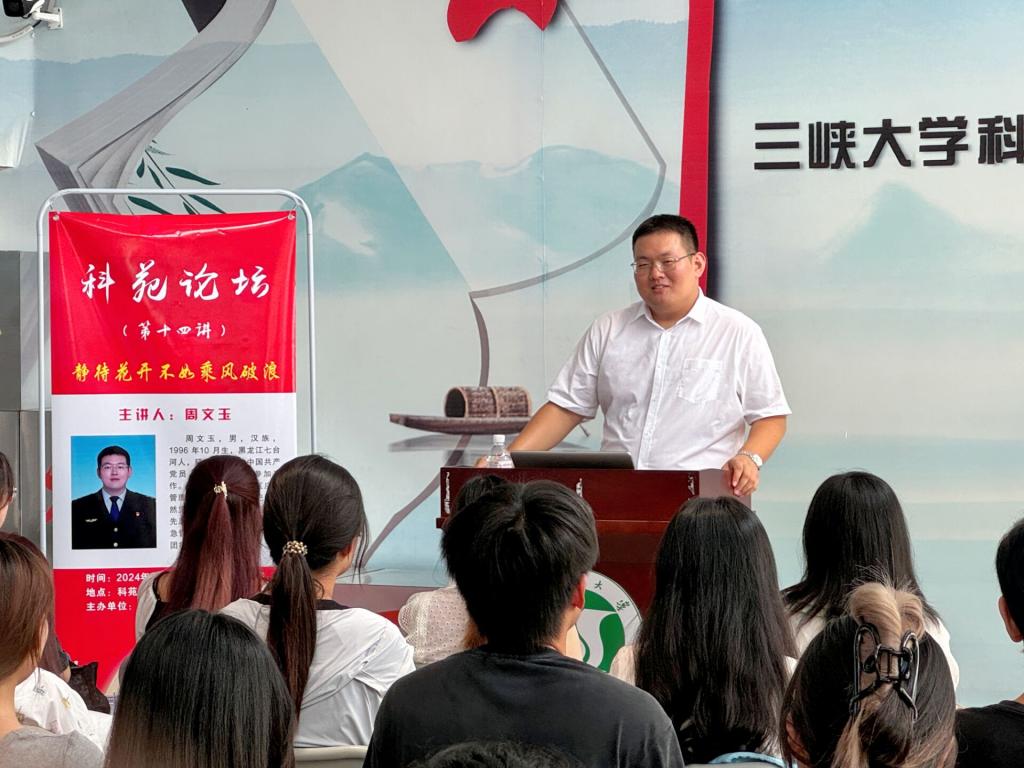 在分享会上,广西壮族自治区应急管理厅直属机关团委书记、自然灾害救援处三级主任科员,2018届水利水电工程专业校友周文玉以《静待花开 不如乘风破浪》为题,讲述在大学期间要做好自己的人生规划,毕业时要抓住机会,不要被动等待,机会往往青睐于那些勇于尝试、主动出击的人。无论未来规划如何,都不要忘记终身学习,持续的学习能让我们在变化中立于不败之地。