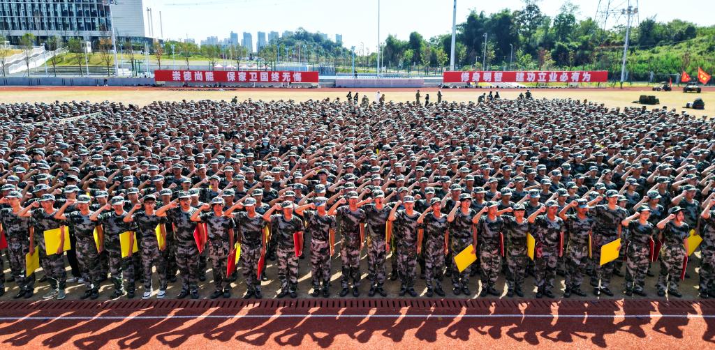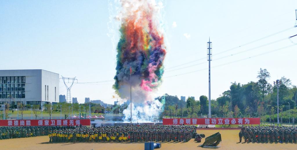 经过数周严格的军事训练,新生们以饱满的热情和昂扬的斗志,在汇演中展示了他们的成长与蜕变。从最初的青涩懵懂到如今的英姿飒爽,每一个挺拔的身姿、每一次响亮的口号,都是他们对“纪律、荣誉、勇气”深刻理解的最好诠释。