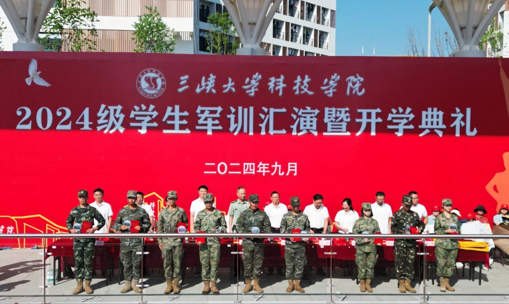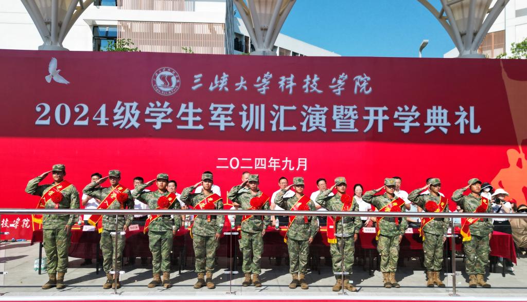本网讯(张袁/文 潘博文 胡文博/图)在这金秋送爽、硕果累累的美好时节,我们满怀激动与期待的心情,迎来了三峡大学科技学院2024级学生军训汇演暨开学典礼。这不仅是对新生接受国防教育、培养坚韧不拔意志的检阅,也是对全体师生新学期扬帆起航的动员令,更是一场凝聚梦想、展现风采的视听盛宴。