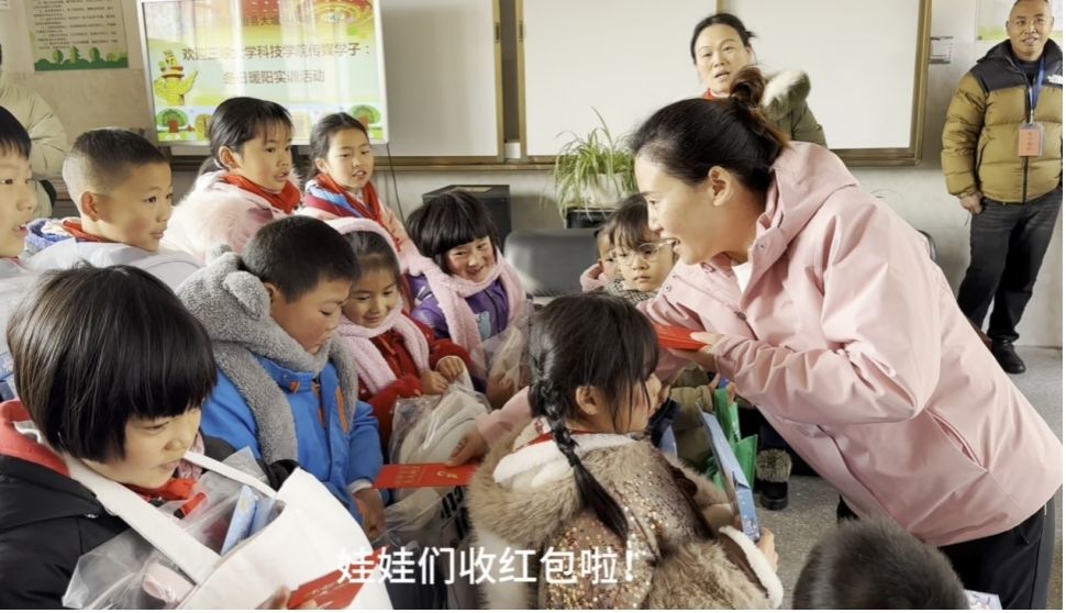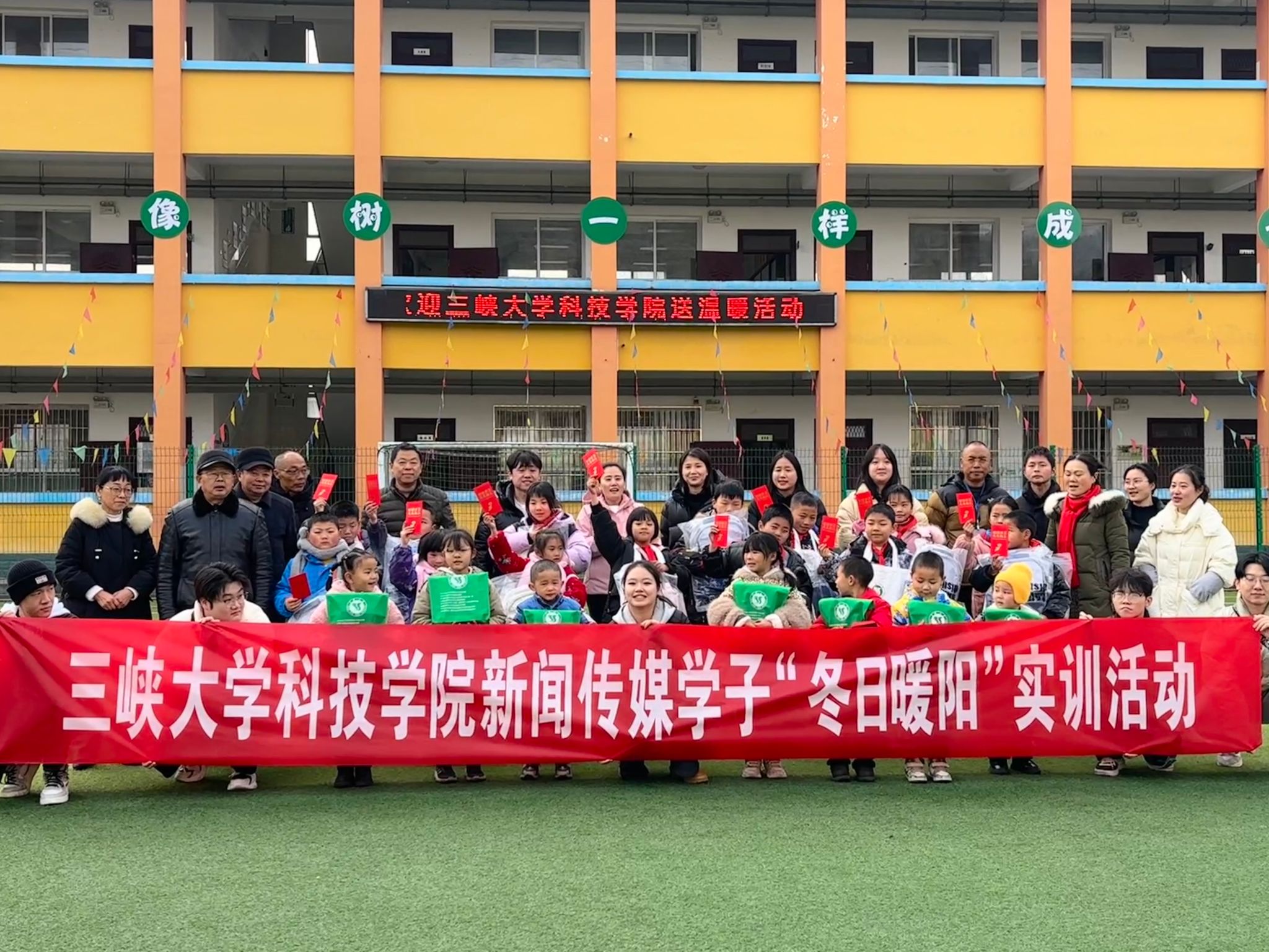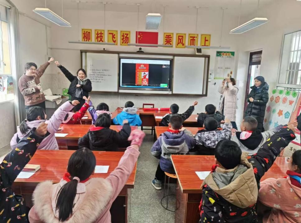 三峡大学科技学院的师生为孩子们带去精彩纷呈的课程。播音主持专业的学生以独具风格的语言艺术课,教孩子们拜年祝词,娃娃们听得津津有味。