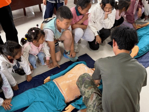在古韵童趣课堂,志愿者将楚文化精髓融入安全教育:防溺水情景剧化用屈原《九章》"涉江"典故,通过"涉水三问"互动传递生命至上理念;防诈骗教学以"昭君出塞"为背景设计穿越情景,孩童化身"小小和亲使"破解西域迷局;急救演练结合中医精神与现代技术,孩子们在假人模型前专注练习的模样,恰似文化传承的生动注脚。非遗工坊内,传统技艺焕发新生机:漆扇上楚纹样与卡通元素共舞,缠花发簪演绎古今审美对话,退伍学生示范的射击训练与投壶游戏暗合楚人开拓精神,蹴鞠场上跃动的身影重现"蹴鞠屡过飞鸟上"的诗意场景。